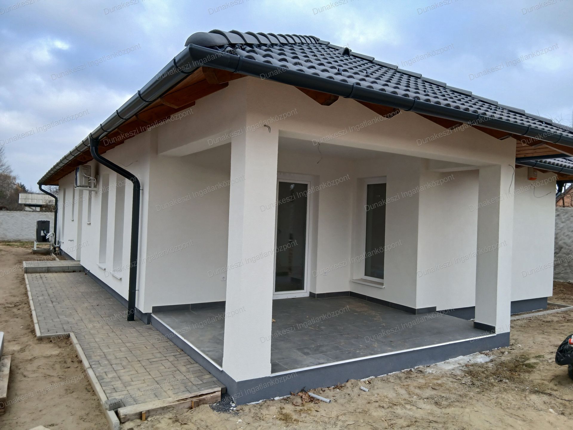 Az ingatlan függőleges teherhordó szerkezetei 30 cm vastagságú Porotherm téglából készültek, homlokzati szigeteléssel. A tetőt antracitszürke színű Bramac betoncserép fedi. A fűtési rendszer HŐSZIVATTYÚVAL van kialakítva, az összes helyiség PADLÓFŰTÉSSEL ellátott. A házban hűtő/fűtő klímák is beépítésre kerültek. A telken kerti csap kiállás is van!