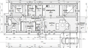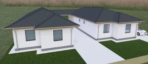 A házban kialakításra kerül amerikai konyhás nappali + 3 hálószoba, háztartási helyiség, dolgozó szoba.