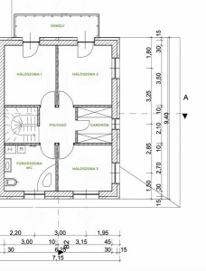15 cm homlokzati szigetelés, 30 cm-es mennyezet szigetelés.