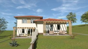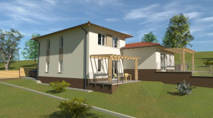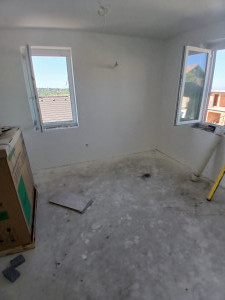 Mogyoródon új építésű részen, NAGYON ALACSONY energia felhasználású ikerházfél eladó. Az m3-as autópályáról 1 perc alatt megközelíthető, nagyon kúltúrált aszfaltos utcában.
