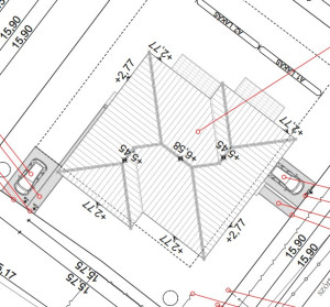 -Bramac, Római Novo típusú barna betoncseréppel van fedve, alatta pára áteresztő fóliával ellátva. Esővíz elvezetés bádogcsatornával a járda szintig, szikkasztó gödörbe belevezetve.