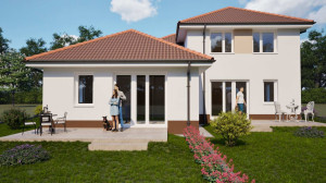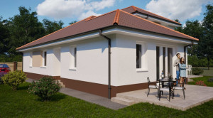 A FÖLDSZINTES ikerház több méretben, amerikai konyhás nappali+3 vagy 4 hálószoba, fürdőszoba, háztartási helyiség, kamra, előszoba, külön mellékhelyiséggel épül meg.